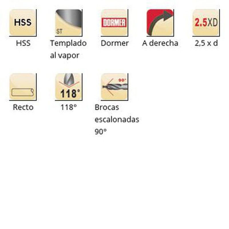 A412 - Foret étagé Dormer HSS trempé à la vapeur 118° Série courte Forets étagés Dormer 90°